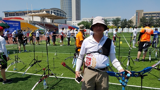 雖然到天津前,一直留意天津天氣,亦對這幾天的天氣作了分析,已經有所準備,帶來了十多盒寶礦力粉應付需要,還好尚群準備了一個大冰箱及不斷的給會員供水,李亮有非常豐當比賽經驗,會了解會員最需要甚麼 ? 這點尚群做得非常好。回說比賽,今天賽程首先進行反曲弓及光弓的排位賽,然後才是男女子複合弓排位賽。反曲弓只有食神作賽,食神是一位二級半教練,已且有非常豐富比賽經驗,只要確保食神的水供應足夠便不成問題。