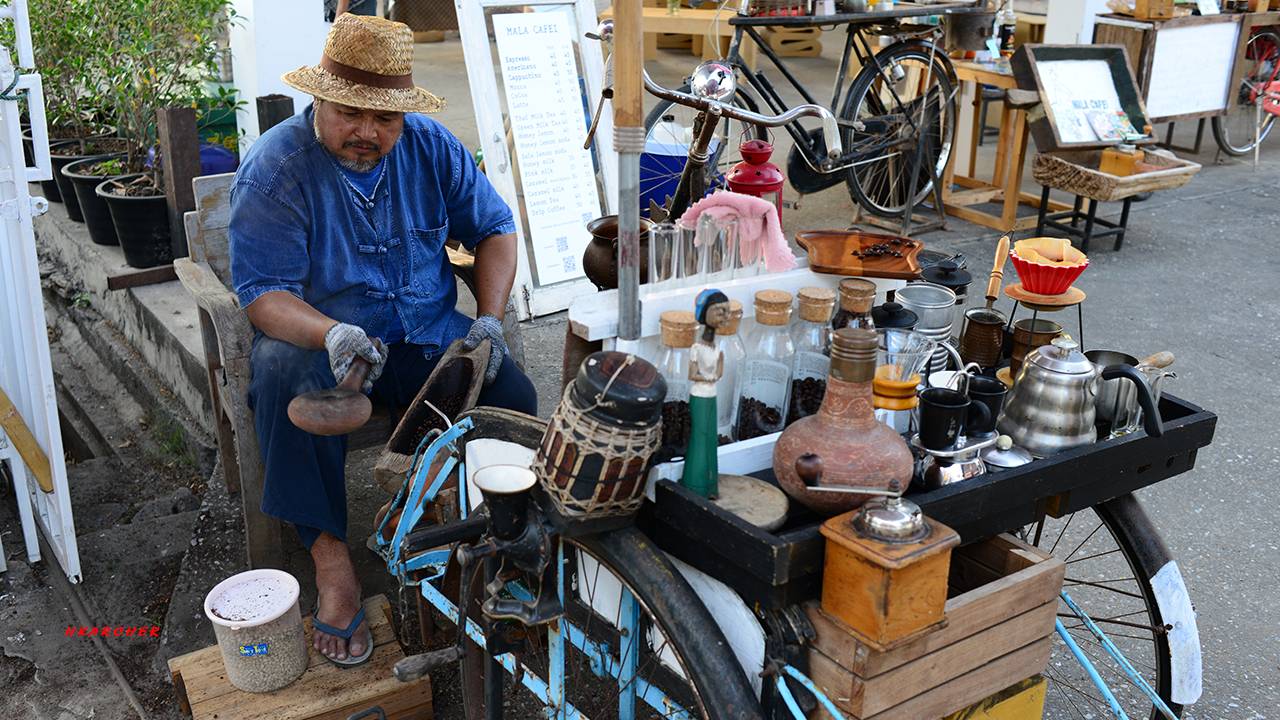 下午回到市內古城慢慢走走。清邁城內總是散發著舊有的文化味道,古老的寺廟與街巷交織出一種悠然氛圍。途中走進一間咖啡店,師父專業地烘焙咖啡,香氣瀰漫在空氣中,讓人感受到傳統與現代交融的美好。